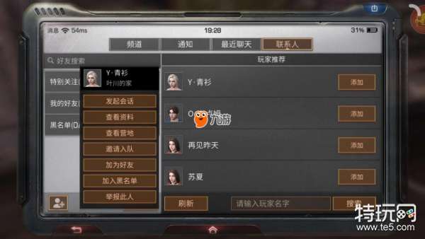 首先,玩家可以通过系统的好友推荐列表,来添加和你游戏进度差不多的玩家,一起并肩作战。这种方法只需要点击玩家名称后的“添加”按钮即可发送申请,还可以点击玩家头像查看玩家的基本资料。