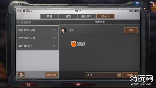 其次,玩家还可以通过联系人界面下方的搜索栏添加好友,注意一定要完全正确的输入玩家姓名(包括个别玩家姓名中的特殊符号)才可以搜索到该玩家。