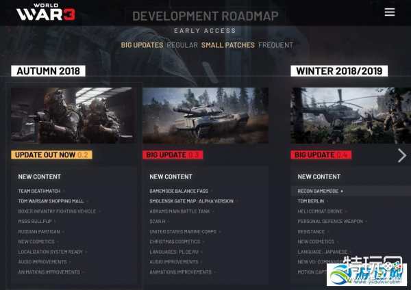 随着昨晚0.2版本更新,官方还发布了游戏未来更新计划,从目前公布的内容可知今年年末至明年年初官方预计还会发布4次游戏更新,主要带来全新地图、模式、武器、载具、势力等,同时还会对游戏平衡性、游戏体验提升进行改进,值得一提的是在路线图中0.5版本更新预计带来中文语言支持,敬请期待啦!