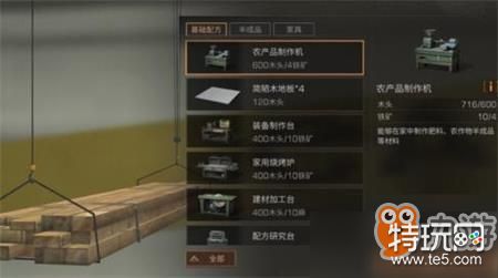 于营地或快乐101家具店打造农产品制作机。注意,配方是600木头、4铁矿。同时,制作需花费一段时间,且制作完成后自动发送至家园邮箱。