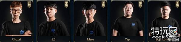CV战队:打野:Chozzi中路:LZ上路:Maru辅助:Yap下路: Lorraine