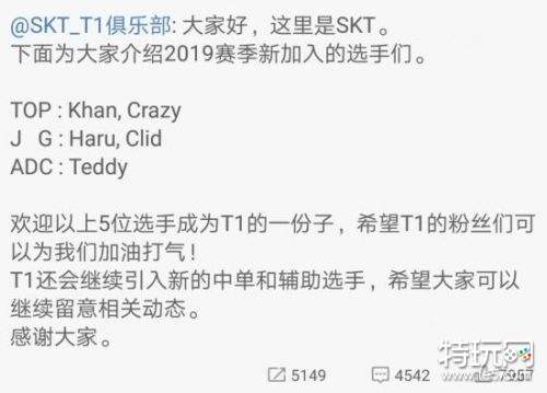 SKT新阵容点评:Khan、Haru、Clid、Teddy,北京时间11月22日,下午五点,SKT官宣了五名新加入的成员。