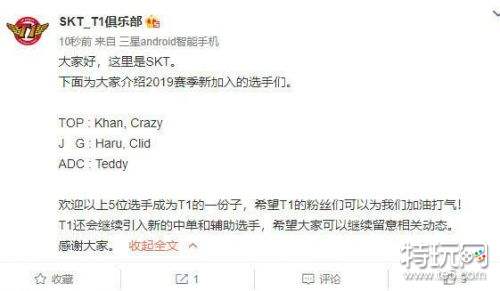 这五位选手的实力都非常强劲,都是LCK个人能力最为顶尖的选手。对于SKT的新阵容,很多玩家都表示除了辅助Effort经验太少之外,真的是非常完美了,可以说是新的银河战舰。值得一提的是,即便如此,SKT仍然没有停止引援,他们还将会引入中单和辅助选手!不得不说,SKT不愧是韩国的知名通信公司啊,真的是财大气粗!