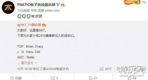 就连S8亚军Fnatic战队官博也在微博中赞叹称这个阵容真的有点狠!