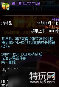 罚站120分钟可获得暗王斯狄尔的礼盒,礼盒内含10张深渊派对邀请函和1个Lv50~87可用的成长胶囊(10%)。