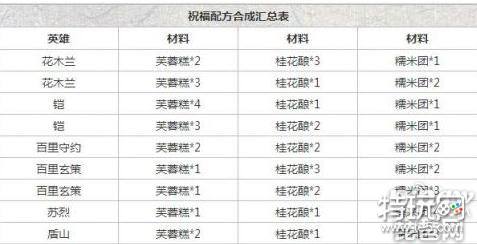 王者荣耀长城之畔的祝福全部英雄配方表一览 苏烈怎么配?