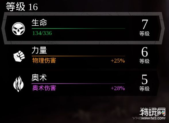 拿蓝魂兑换属性点,获得的属性点可以自由加在生命、力量、奥术三处。其中力量代表物理攻击,奥术包括闪避反击、蓄力攻击、神怒攻击、暴乱形态的攻击。