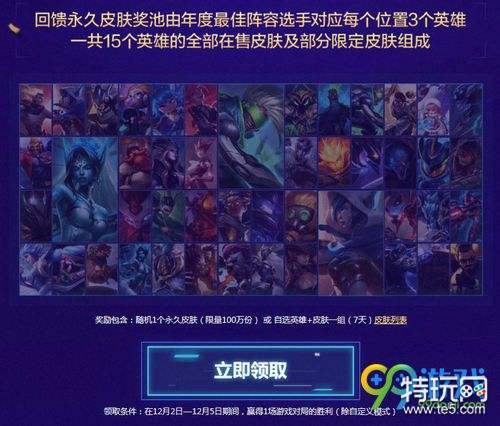 回归永久皮肤奖池有年度最佳阵容选手对应每个位置3个英雄,一共15个英雄的全部在售皮肤及部分限定皮肤组成。