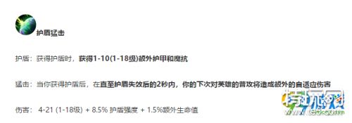 护盾猛击:被动护盾存在下拥有额外抗性与普攻伤害