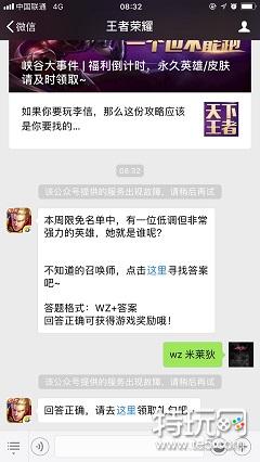 本周限免名单中,有一位低调但非常强力的英雄,她就是谁呢?(答题格式:WZ+答案)