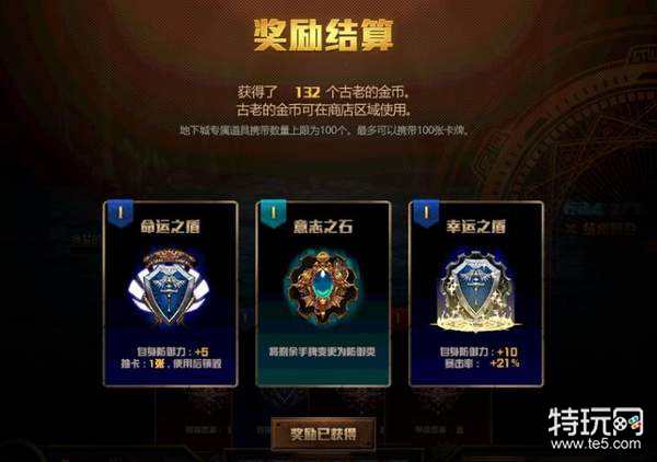 通过怪物关卡即可获得奖励古老的金币+随机卡牌选择其中之一。