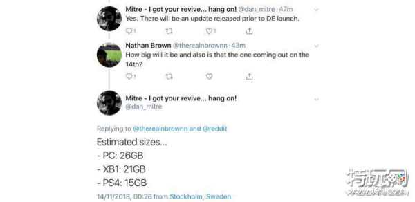 PC端更新大小更新为:1.56GB,XB1端为530MB,PS4端为350MB。目前PS4端更新已开始,PC端更新时间为今天17时,XB1端为今天18时。还请玩家互相转告!