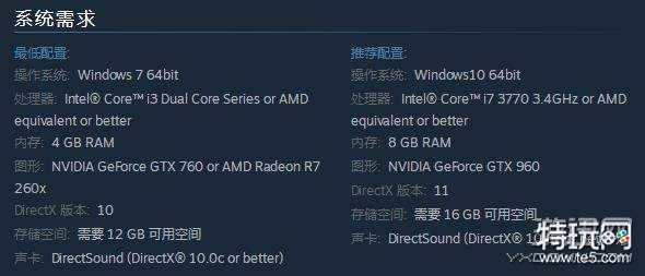 显卡: NVIDIA GeForce GTX 760 or AMD Radeon R7 260x