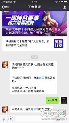 请问拥有星元皮肤-上阳台帖的英雄是哪一个?王者荣耀星元皮肤活动玩法近期可是非常火热的,相信许多玩家都在进行上阳台帖的各种获得方法来兑换自己喜欢的皮肤,那么今天的答案玩法是哪个呢,快来看看吧。