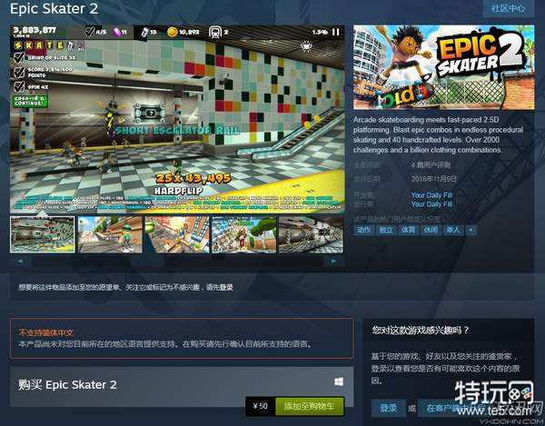 《史诗滑板2》目前已登陆PC/iOS/安卓平台,steam售价为50元。