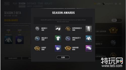 * 上面的图片正在开发中。 最终细节可能有所不同我们增加了一个奖励系统来奖励那些为新的称号系统而努力奋斗的玩家。在Beta测试第二季中,你将会获得基于本赛季最高称号的奖励,而不管模式(单人/双人/团队)或视角(TPP/FPP)。这些奖励将在下赛季开始时发放。