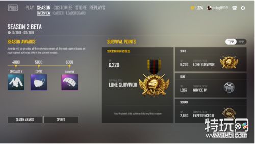 * 上面的图片正在开发中。 最终细节可能有所不同*新手在达到游戏里程时能通过生存者称号获得奖励。您可以在游戏大厅的“赛季概述”页面的称号信息中查看个人信息状态。孤狼生存者将获得与生存者相同的奖励,并将位列前1000名的玩家可保留“孤狼生存者”的称号。