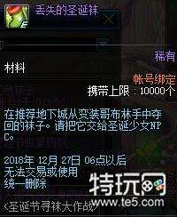 活动期间通过推荐地下城收集丢失的圣诞袜,可在NPC处兑换奖励。: