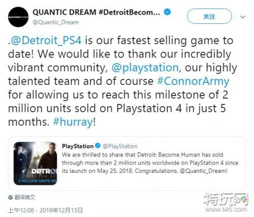 《底特律:变人》官方宣布全球销量突破200万
