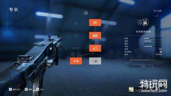 维克斯最大的放大倍数只有1.5倍镜,升级降低过热时间的专长可以以830的射速一次性打76发子弹,而如果升级垂直后坐力射速降低过热,则可以以981的射速一次性打60发子弹,实际上并不如升级射速。另外维克斯的后坐力升级提升并不是很大,所以在通用性上升级右边的左右后坐力不如升级左边的射速。