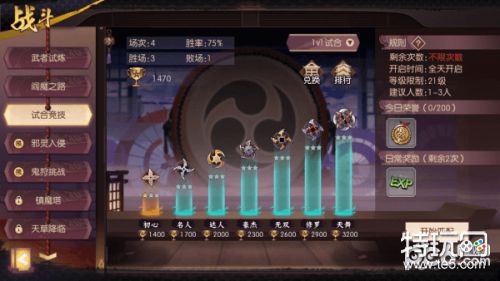 试合竞技包括1V1与3V3两种竞技模式。1V1试合竞技考验武者单打独特的个人竞技能力,它将技能排列与战术技巧充分融合到一起,也是更容易实现越战的主要竞技方式。而3V3试合竞技模式则考验武者组团战斗方式,只有牺牲自我实现超强的团体配合,才是武者胜出的主流。相对来说,1V1才是提升武者PVP对战实力的基础提升方式,限制时间限制场地的战斗中,仍旧需要武者多多开发自己的脑洞,使自己的真实战力无限接近100%发挥,才是武者最终胜出的关键。对于咒师相对脆皮易碎的性格,增强战斗时的生存率是武者最终实现生存的基础。。