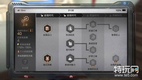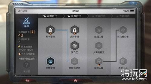 市民可以通过种植,使用个人功能家具或领取福利箱等营地日常行为获得科技点数,科技点以用于各项技能的研发。