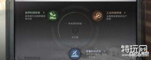 营地科技共有3种:自然、工业和军事,每个营地市民可以根据自己的喜好,配置合适自己的个人科技;市长可以配置全体市民共同使用的营地科技。市长可以升级营地的类型,让市民配置更多的科技。