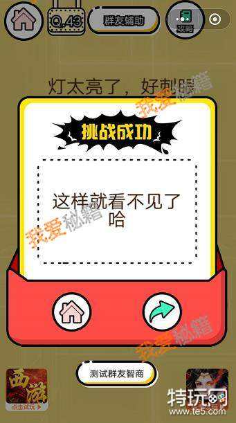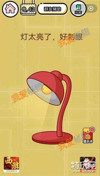智力达人第43关图片中有一个红色的台灯,这个台灯太亮了,小编也觉得有点刺眼,点击台灯的开关也不能将他关闭,正确的操作方法应该是什么呢?还没有完成通关的小伙伴们就来看详细攻略吧!