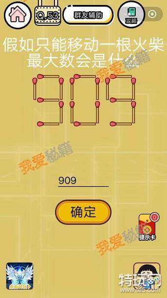 智力达人第53关假如只能移动一根火柴最大数会是什么?