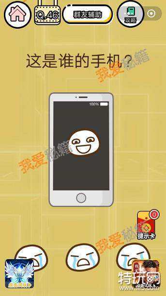 智力达人第46关这是谁的手机?