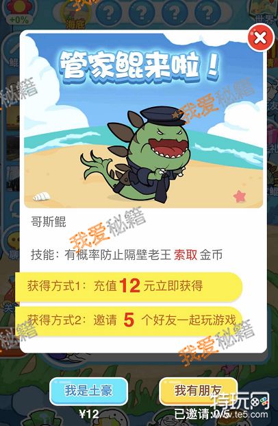 开心王者鲲管家鲲获取方法1:我是土豪,直接充值12元立即获得