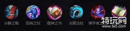 出装:冷静之靴+噬神之书+痛苦面具+回响法杖+博学者之怒+大法穿杖