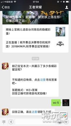 妲己宝宝本次一共展示了多少条精彩留言呢?微信公众号经常会给许多玩家开展许多精彩的游戏资讯玩法,其中今天的微信公众号答案就是关于本次的妲己宝宝精彩留言问题,可以在工公众号玩法中寻找哦。
