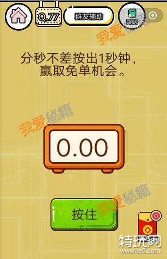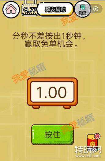 智力达人第77关分秒不差按出1秒钟,赢取免单机会