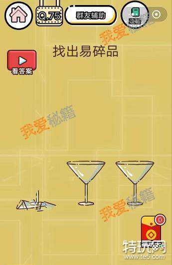 微信小程序游戏智力达人你们喜欢玩吗?其中第75关有三个高脚杯,让我们找出易碎品,这几个不都是易碎品吗?杯子不都是易碎品吗?同时点击为什么不正确呢?感兴趣的小伙伴们就来看正确答案吧!