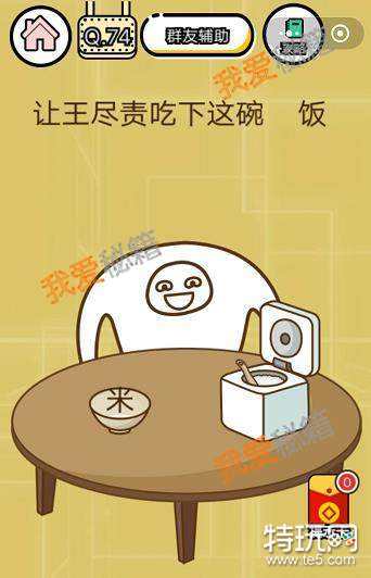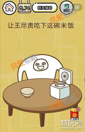 智力达人第74关王尽责正在吃饭,一个电饭煲,还有一个碗,怎么才能让王尽责吃饭呢?碗也拿不起来啊,还没有完成通关的小伙伴们就来看正确操作方法吧!