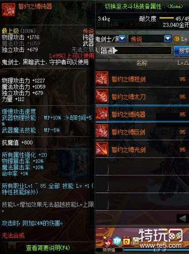 dnf鬼剑士95传说武器 dnf鬼剑士95传说武器属性一览
