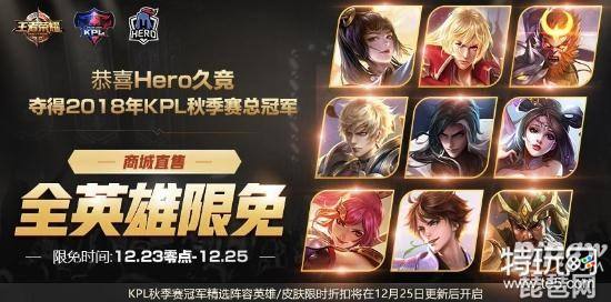 王者荣耀KPL秋季赛总决赛已经完美落幕,为了庆祝Hero久竞夺得总冠军,官方开启了商城全直售英雄限免活动,以下是活动详情以及相关攻略,一起来了解一下吧。