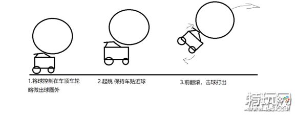 车的后轮要略微的出球圈外一点,这样一来你的前翻滚就能直接用车尾做出地面投射了!