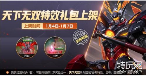 购买红蓝对决(1日),可额外获得以下之一:吕布专属击败和回城特效-天下无双(永久)、吕布、圣诞狂欢、末日机甲、皮肤碎片、荣耀积分、新品皮肤抽奖券。