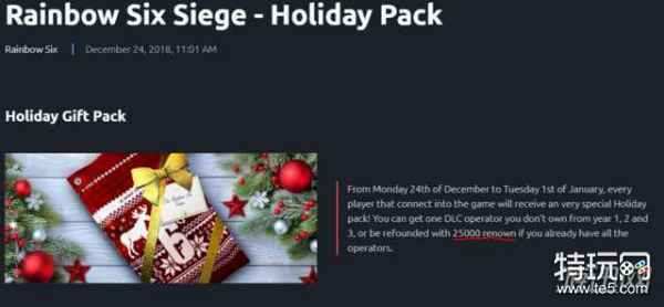 以上就是彩虹六号圣诞礼包内容介绍,玩家可以登录游戏来获取新的礼包