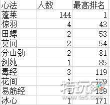 《剑网3》33前两百职业统计
