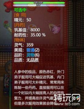 了不起的修仙模拟器赤参作用:赤参是制作各种丹药的素材,服用也可以大幅提高筑基值,非常珍贵。