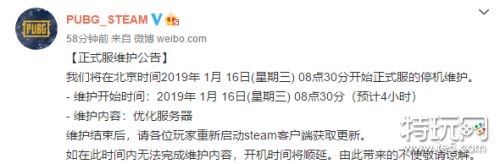 绝地求生1月16日更新维护具体时间 绝地求生1月16日更新内容,绝地求生将在北京时间2019年1月16日星期三优化游戏服务器,到时玩家需要重新启动steam客户端获取更新,大家知道绝地求生1月16日正式服维护什么时候结束吗?下面小编就告诉大家绝地求生1月16日正式服维护结束时间,一起来看看吧。