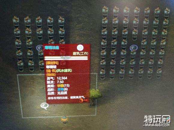 6、赭黄精的法阵两圈和三圈的聚灵效果一样,故认为灵气影响只有两格,有人说有查看游戏文件灵木是3,星髓是5,可能不同材料不同,要再去试试。