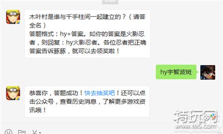 木叶村是谁与千手柱间一起建立的?(请答全名)火影忍者微信公众号答题玩法今天的题目已经开始更新,相信不少小伙伴都对今天的问题答案不是很了解,其实游戏中的玩法也是非常的多。下面小编就来给大家公布下正确答案。