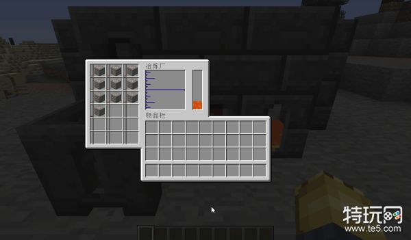 怎么烧?直接把铁矿扔到冶炼炉里就行了!简单粗暴!在下图中可以看到,落到冶炼炉里的铁矿变成了方块状态,这代表冶炼炉正在烧炼它。这样我们也可以直观地看到冶炼炉还有多少个方块的剩余空间。