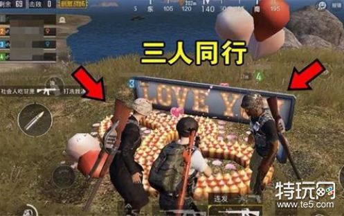今早有三名玩家一起跳的野区,发现这里多了一个不一样的东西。走近一看才发现,原来是为情人节设定的一个场景。从图上看,是由字母、爱心蜡烛和气球组成的一个表白现场。不过好像这三名玩家,都是男性啊?如果都是单身的话,这就有一点尴尬了。
