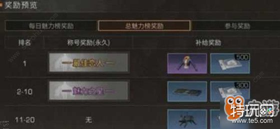 魅力总榜中,玩家魅力排名第一,可领取最佳恋人永久称号,还有额外奖励。