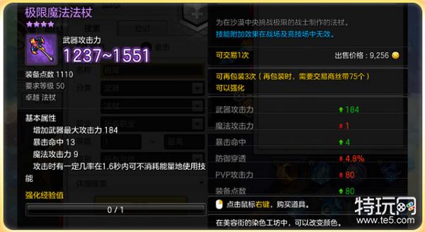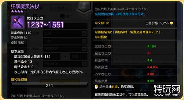 PVP武器 :“气质法杖”很强很好用,对于练级开荒第一梯队的人来说,简直就是神器,满分,绝对给满级,但是不值得去做强化,点个5~6开荒够用就行。